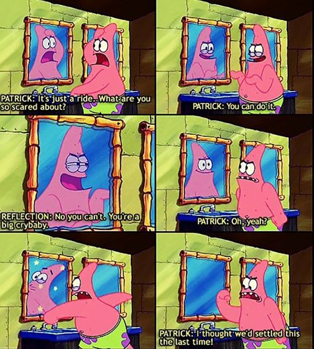 Patrick: “Oh, yeah?! I thought we'd settled this the last time!"