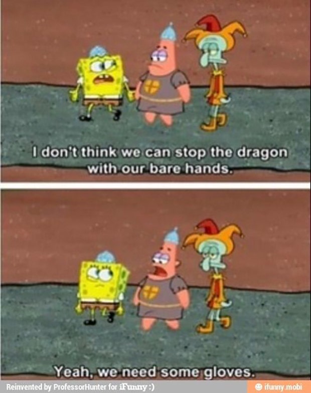 SpongeBob: “I don’t think we can stop the dragon with our bare hands.”
