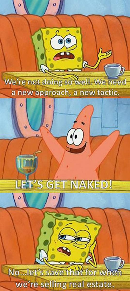 SpongeBob:“No … let’s save that for when we’re selling real estate.”