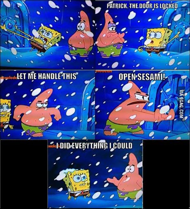 Patrick: “Let me handle this. Open sesami! I did everything I could.”