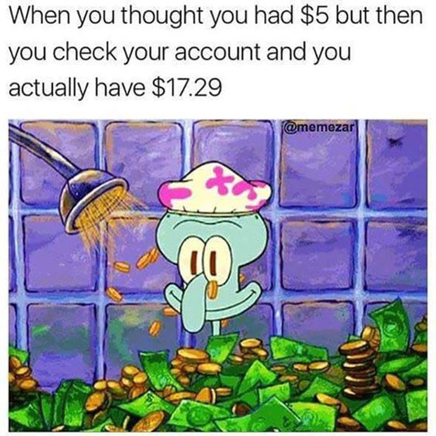 “When you thought that you had $5 but then you check your account and you have $17.29.”