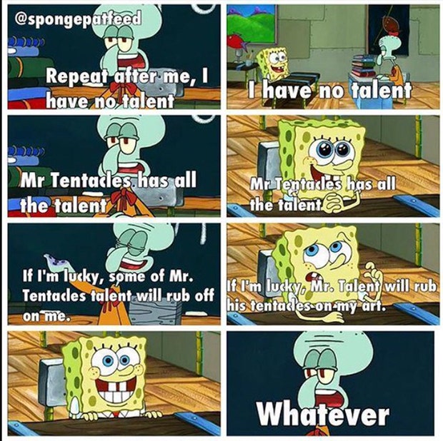 SpongeBob:“If I’m lucky, Mr. Talent will rub his tentacles on my art.”