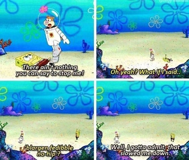 SpongeBob: "Oh yeah? What if I said ... 'blargen fedibble no-hip'?"