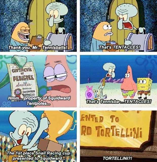Squidward:“The 1st place Snail Racing cup presented to Sqidward … TORTELLINI?!"