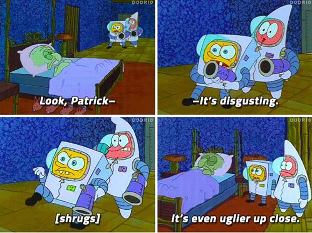 SpongeBob: “Look, Patrick it's disgusting! It’s even uglier up close.”