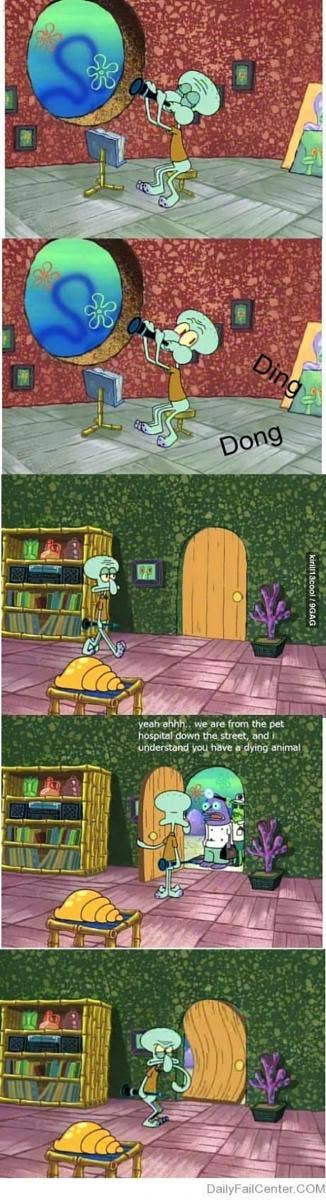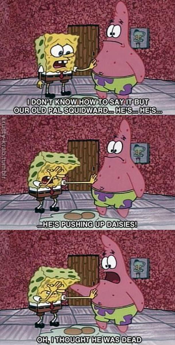 SpongeBob:“I don't know how to say it, but our old pal Squidward ... He's ... He's…He’s pushing up daisies!”