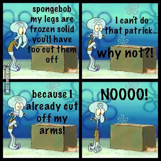 Patrick:"SpongeBob, my legs are frozen solid, you'll have to cut them off."