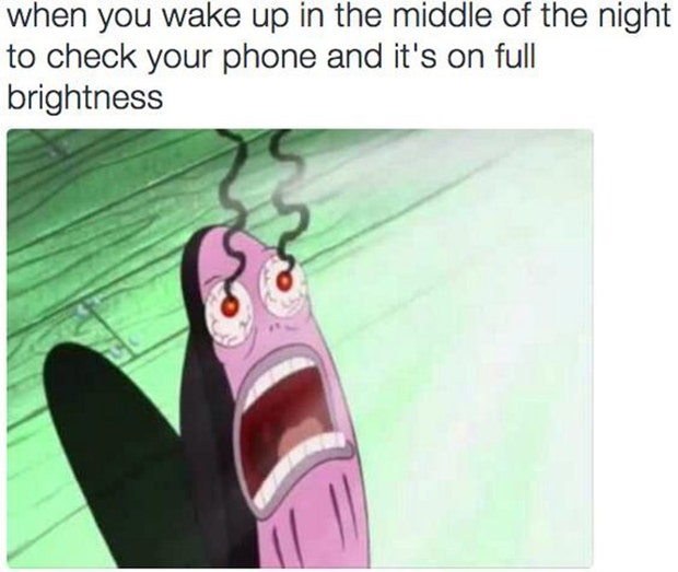 When you wake up in the middle of the night to check your phone and it's on full brightness.