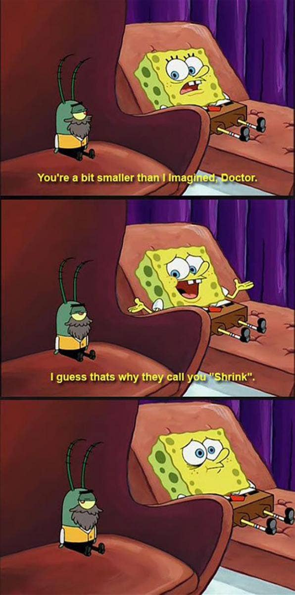 SpongeBob:"You’re a bit smaller than I imaged, Doctor. I guess that’s why the call you ‘Shrink’.”