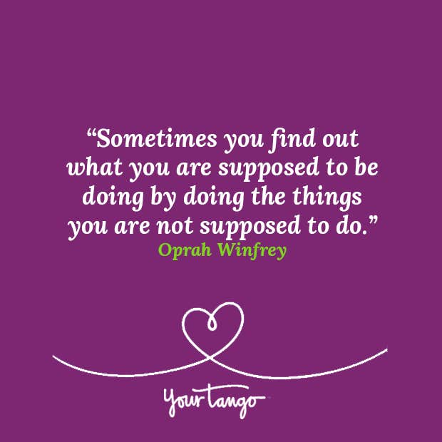 "Sometimes you find out what you are supposed to be doing by doing the things you are not supposed to do." — Oprah Winfrey