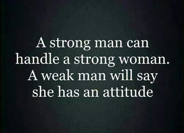 3. “A strong man can handle a strong woman. A weak man will say she has attitude.”