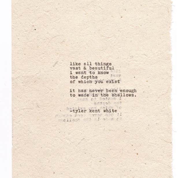 "Like all things vast and beautiful, I want to know the depths of which you exist. It has never been enough to wade in the shallows.” – Tyler Kent White