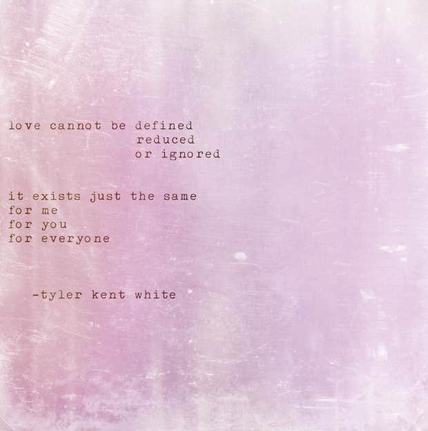"Love cannot be defined, reduced, or ignored. It exists just the same for me, for you, for everyone.” – Tyler Kent White