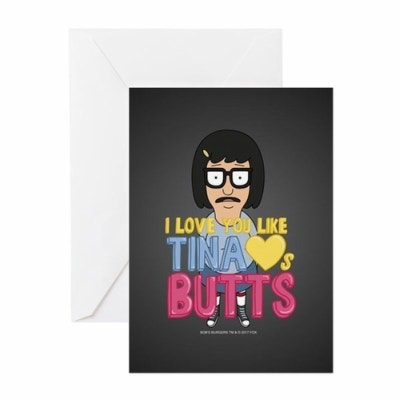 As any bob's burgers fans know loving them like Tina loves butts it's a hell of a lot of love to give. And it's a blank card which means you can write in your own hilarious words about how much your BFF rocks!