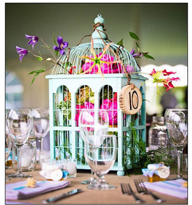9. Vintage, flower-filled bird cage for a delicate touch.