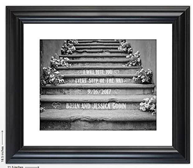 Anything customized is always an instant winner because it's more personal. This print shows just how much you love your beautiful bride, even more now than on your wedding day. The picture itself is so gorgeous, but the meaning behind it makes it just that much more special.