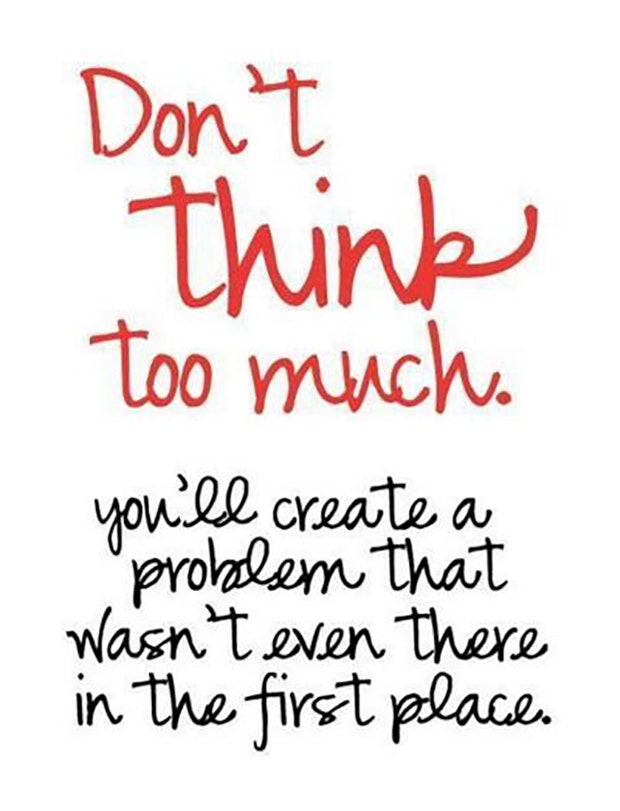 “Don’t think too much. You’ll create a problem that wasn’t even there in the first place.”-Anonymous