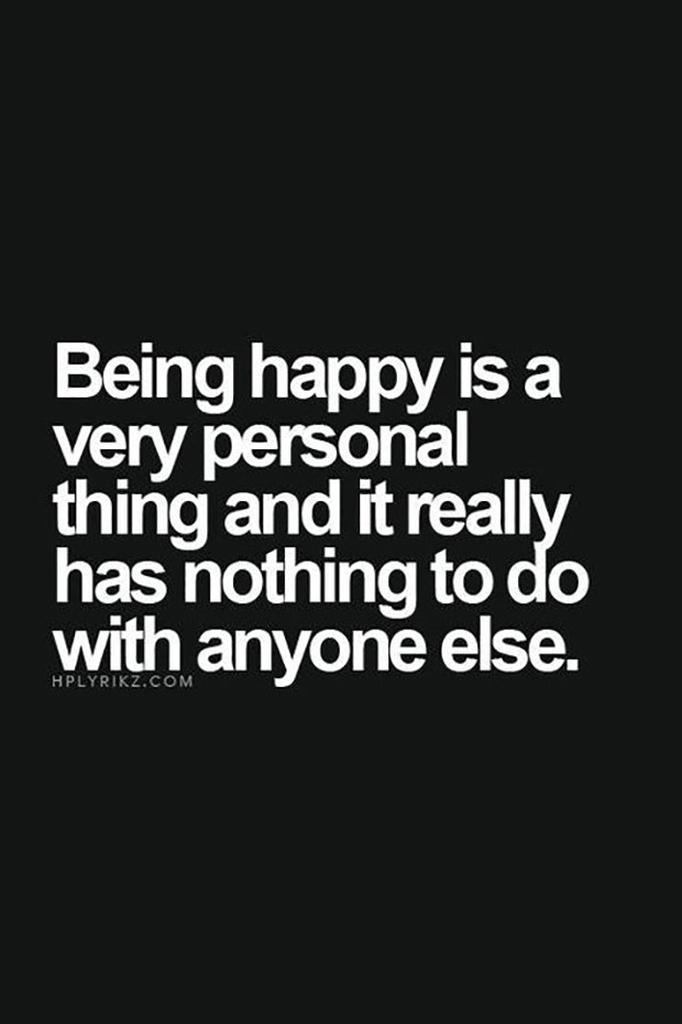 “Being happy is a very personal thing and it really has nothing to do with anyone else.”-Anonymous