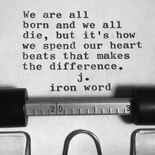 “We are all born and we all die, but it’s how we spend our heartbeats that makes the difference.”—J. Iron Word