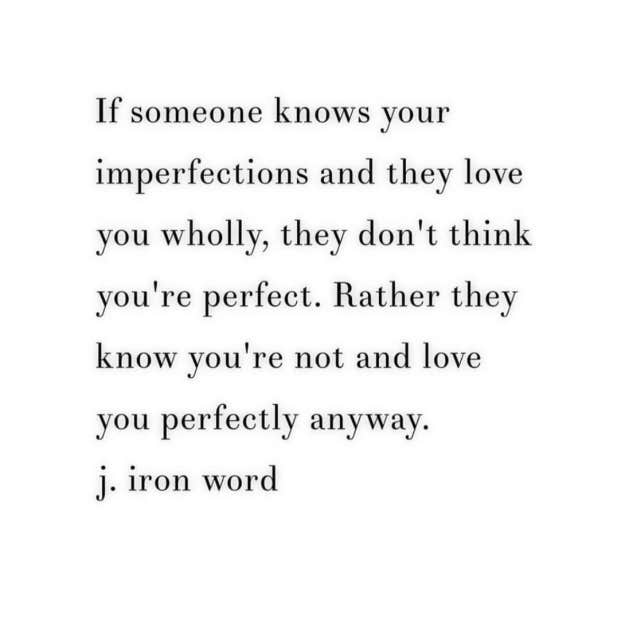 “If someone knows your imperfections and they love you wholly, they don’t think you’re perfect. Rather they know you’re not and love you perfectly anyway.”—J. Iron Word
