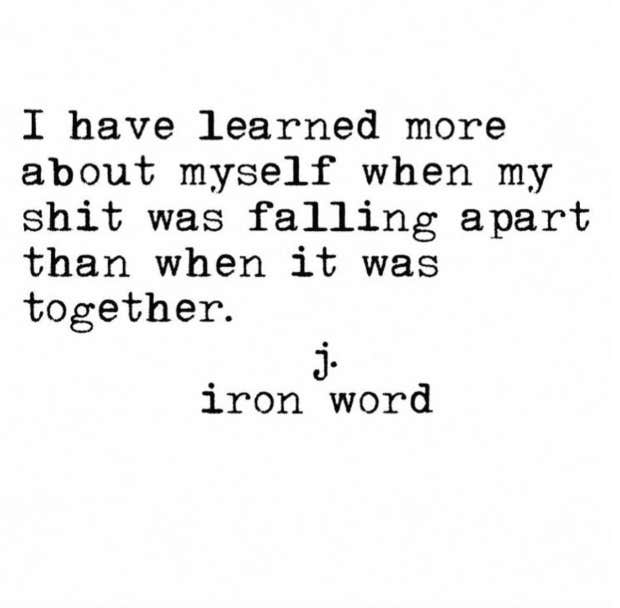 “I have learned more about myself when my shit was falling apart than when it was together.”—J. Iron Word
