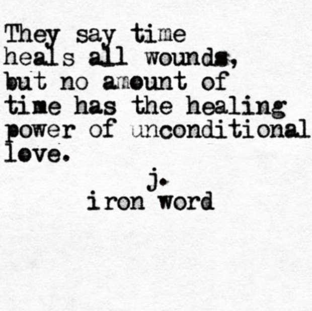 “They say time heals all wounds, but no amount of time has the healing power of unconditional love.”—J. Iron Word