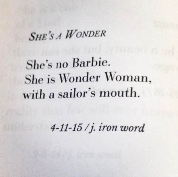 “She’s no Barbie. She is Wonder Woman, with a sailor’s mouth.”—J. Iron Word