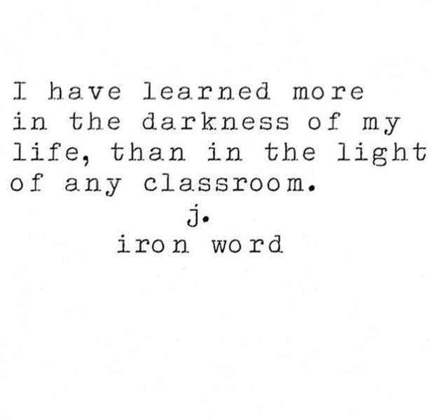 “I have learned more in the darkness of my life, than in the light of any classroom.”—J. Iron Word