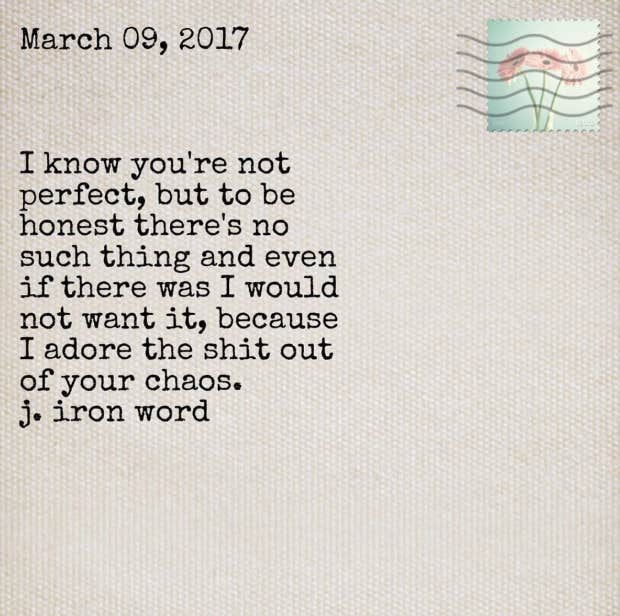 “I know you’re not perfect, but to be honest there’s no such thing and even if there was I would not want it, because I adore the shit out of your chaos.”—J. Iron Word