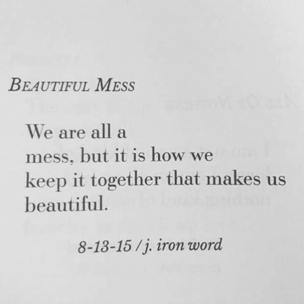“We are all a mess, but it is how we keep it together that makes us beautiful.”—J. Iron Word