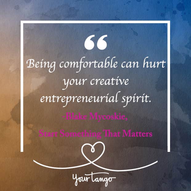 “Being comfortable can hurt your creative entrepreneurial spirit.” — Blake Mycoskie, Start Something That Matters