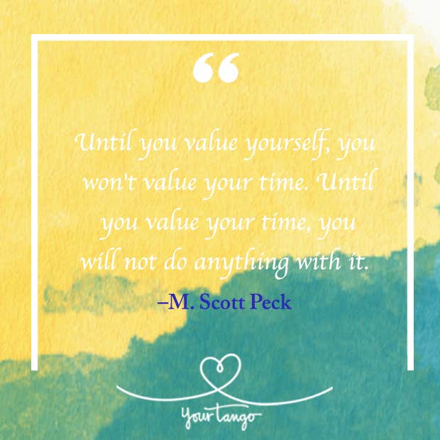 "Until you value yourself, you won't value your time. Until you value your time, you will not do anything with it." —M. Scott Peck, The Road Less Traveled, Timeless Edition: A New Psychology of Love, Traditional Values and Spiritual Growth