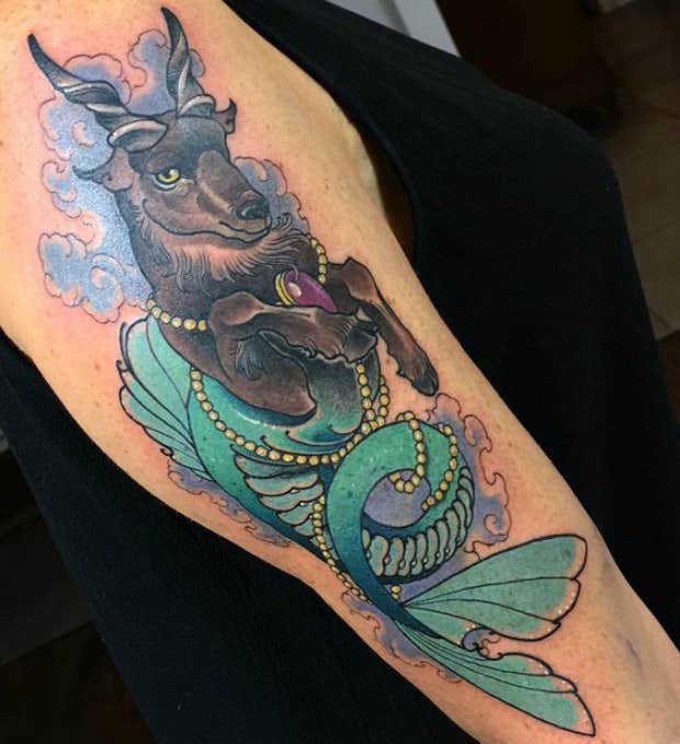 This tattoo is everything and a bag of chips. The Capricorn sea goat is so unique and interesting that you can't help but get a tattoo that shows the animal off in all its glory.