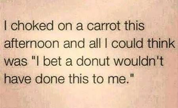 "I choked on a carrot this afternoon and all I could think was "I bet a donut wouldn't have done this to me."-Anonymous