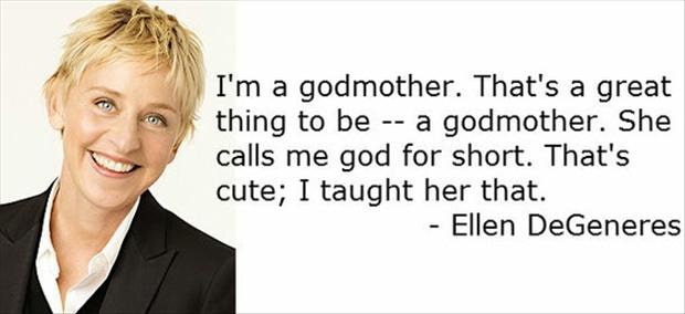 "I'm a godmother. That's a great thing to be-- a godmother. She calls me god for short. That's cute; I taught her that."- Ellen Degeneres
