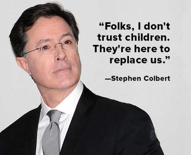 "Folks, I don't trust children. They're here to replace us."- Stephen Colbert