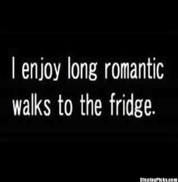 "I enjoy long romantic walks to the fridge."- Anonymous