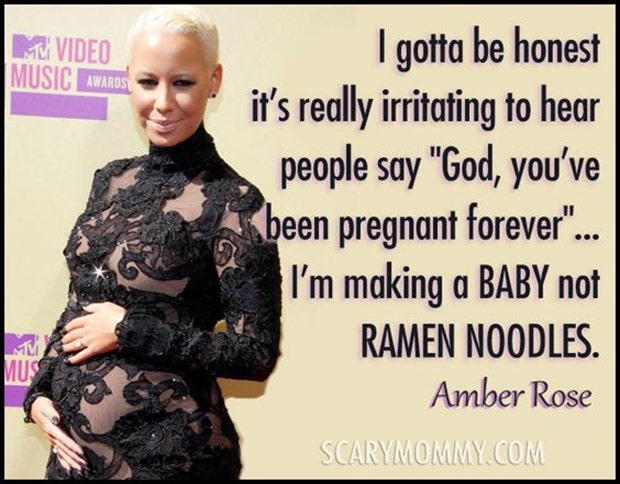 "I gotta be honest, it's really irritating to hear people say 'God, you've been pregnant forever'... I'm making a baby, not ramen noodles."- Amber Rose