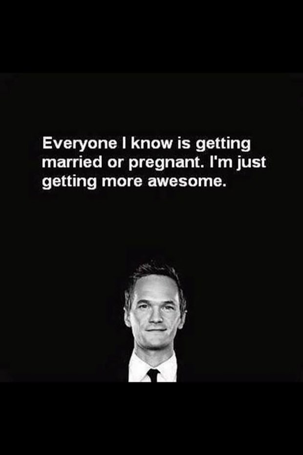 "Everyone I know is getting married or pregnant. I'm just getting more awesome." - Neil Patrick Harris as Barney Stinson