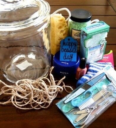 Your boss works hard and deserves a little "me time," so give them a head start with this jar of spa goodies to make them feel better.