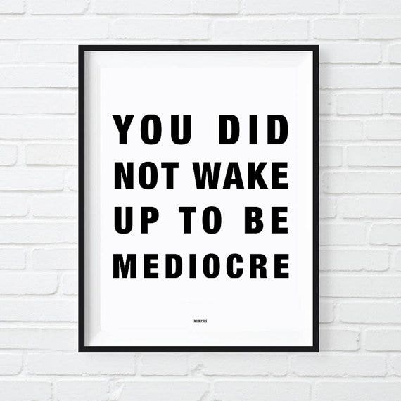 Give your boss something inspiring to look at during a long conference call that reminds them how awesome they really are. You didn't wake up to be mediocre and neither did they. This print celebrates the spirit of excellence.