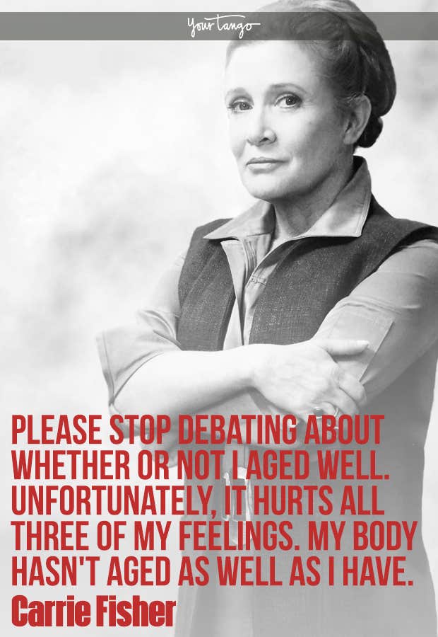 "Please stop debating about whether or not I aged well. Unfortunately, it hurts all three of my feelings. My body hasn't aged as well as I have." — Carrie Fisher