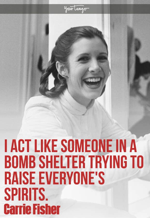 "I act like someone in a bomb shelter trying to raise everyone's spirits." — Carrie Fisher