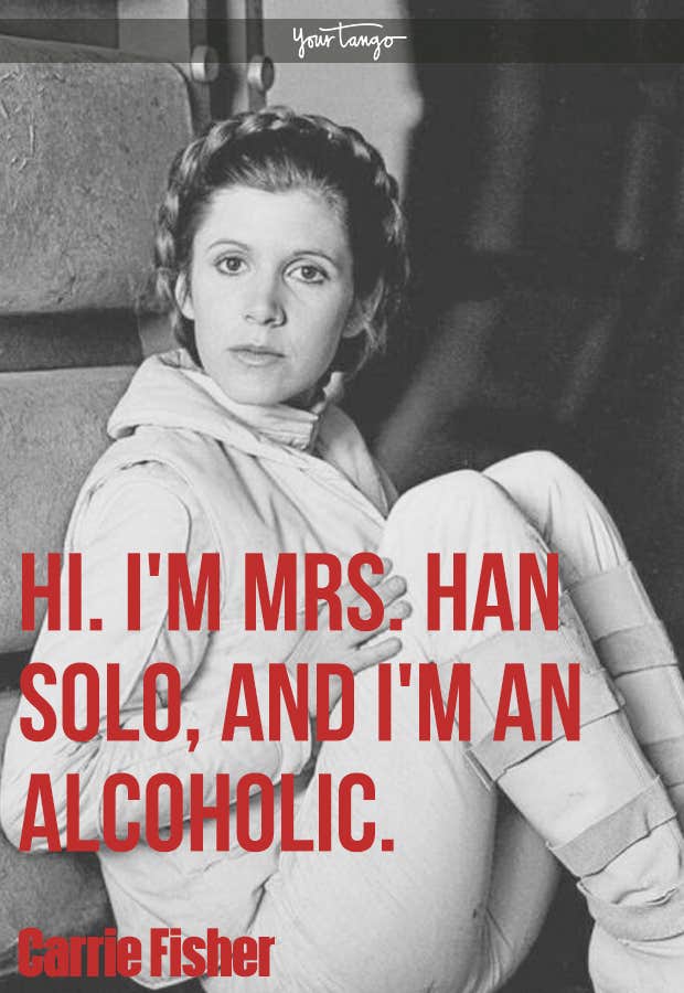 "Hi. I'm Mrs. Han Solo, and I'm an alcoholic."— Carrie Fisher