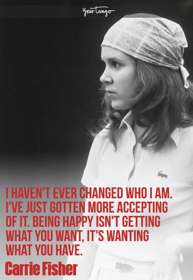 "I haven't ever changed who I am. I've just gotten more accepting of it. Being happy isn't getting what you want, it's wanting what you have."— Carrie Fisher