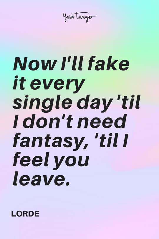 "Now I'll fake it every single day 'til I don't need fantasy, 'til I feel you leave." -Lorde