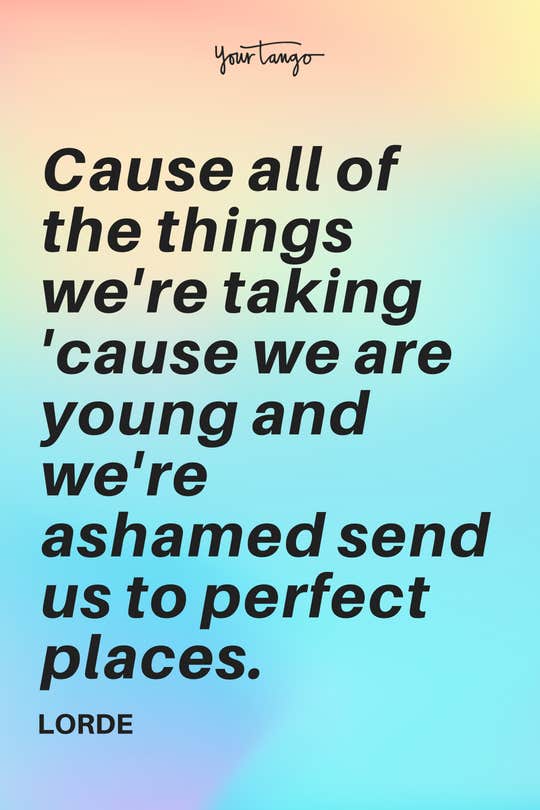 "'Cause all of the things we're taking 'cause we are young and we're ashamed send us to perfect places." -Lorde