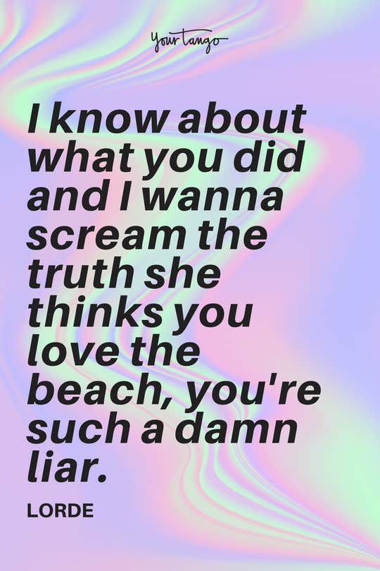 "I know about what you did and I wanna scream the truth she thinks you love the beach, you're such a damn liar." -Lorde