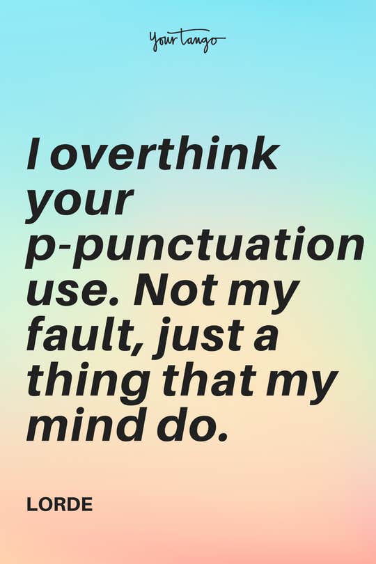 "I overthink your p-punctuation use. Not my fault, just a thing that my mind do." -Lorde