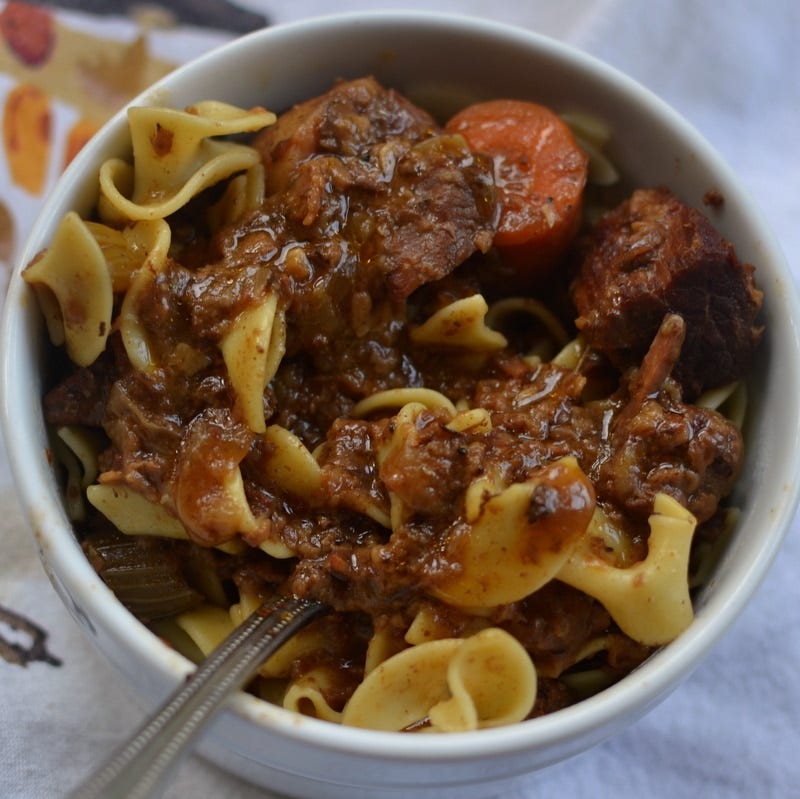 Everything about this recipe is perfect for the crockpot. The meat gets fall-apart tender, the sauce is both savory and sweet, and the whole dish takes about five minutes to put together in the morning.